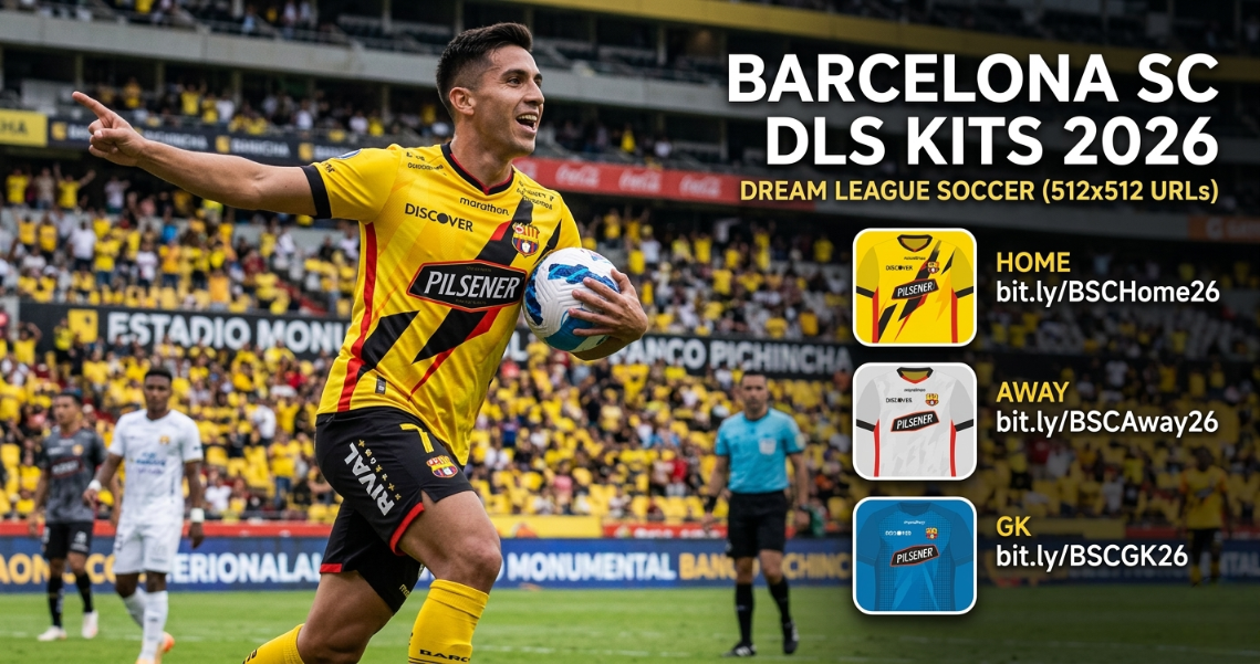 Now you have a complete pack of Barcelona SC DLS Kits 2026 with Home, Away, Third, and Goalkeeper options in one clean place. If you want, tell me your target country and your WordPress post title style (short/long), and I will also write an SEO-ready meta title and meta description that matches your site niche.